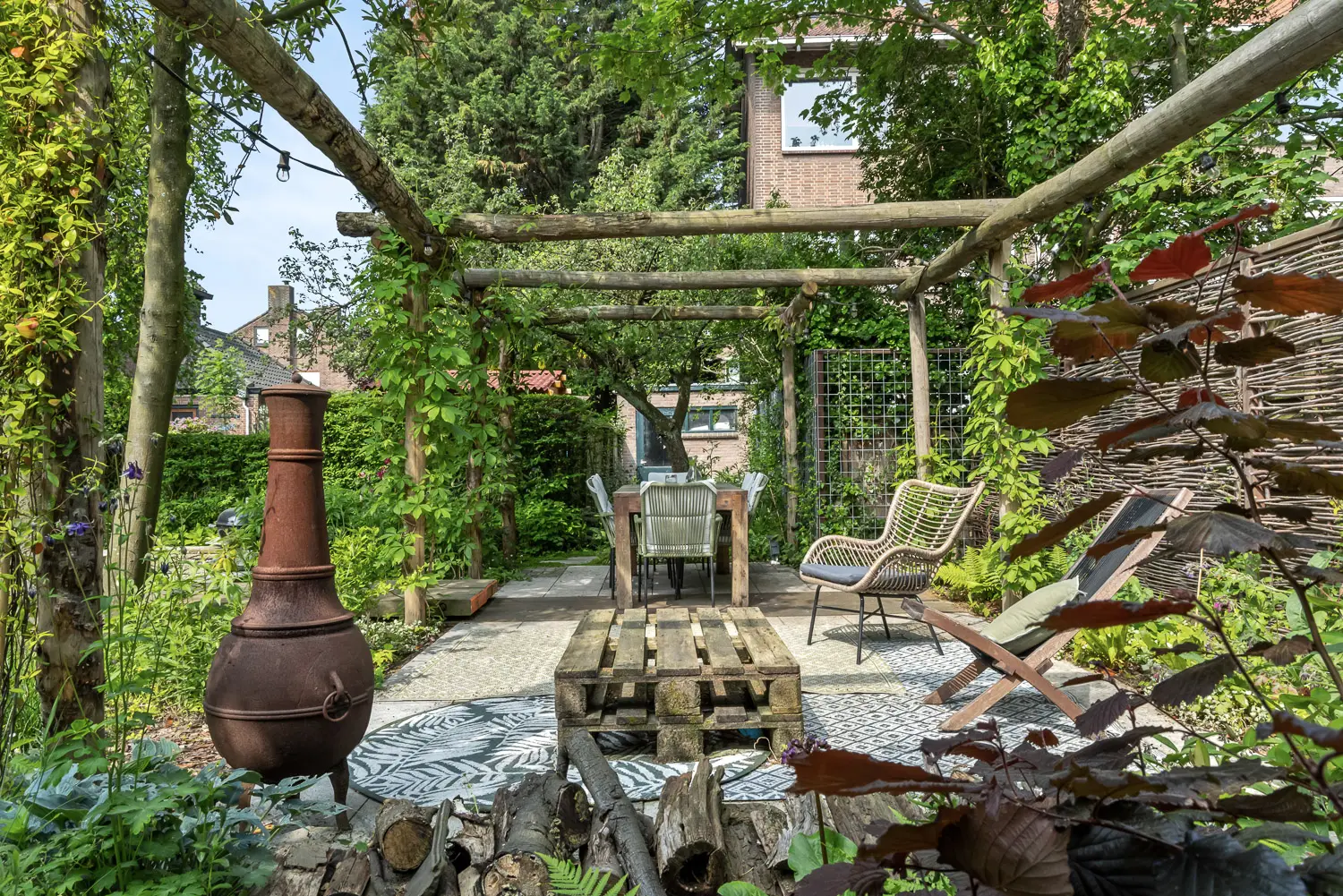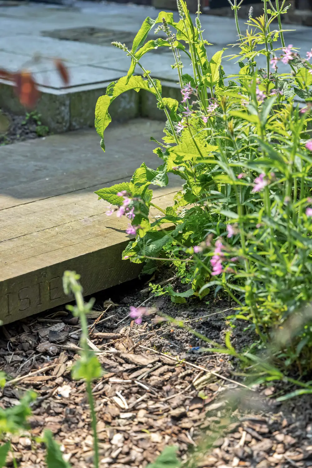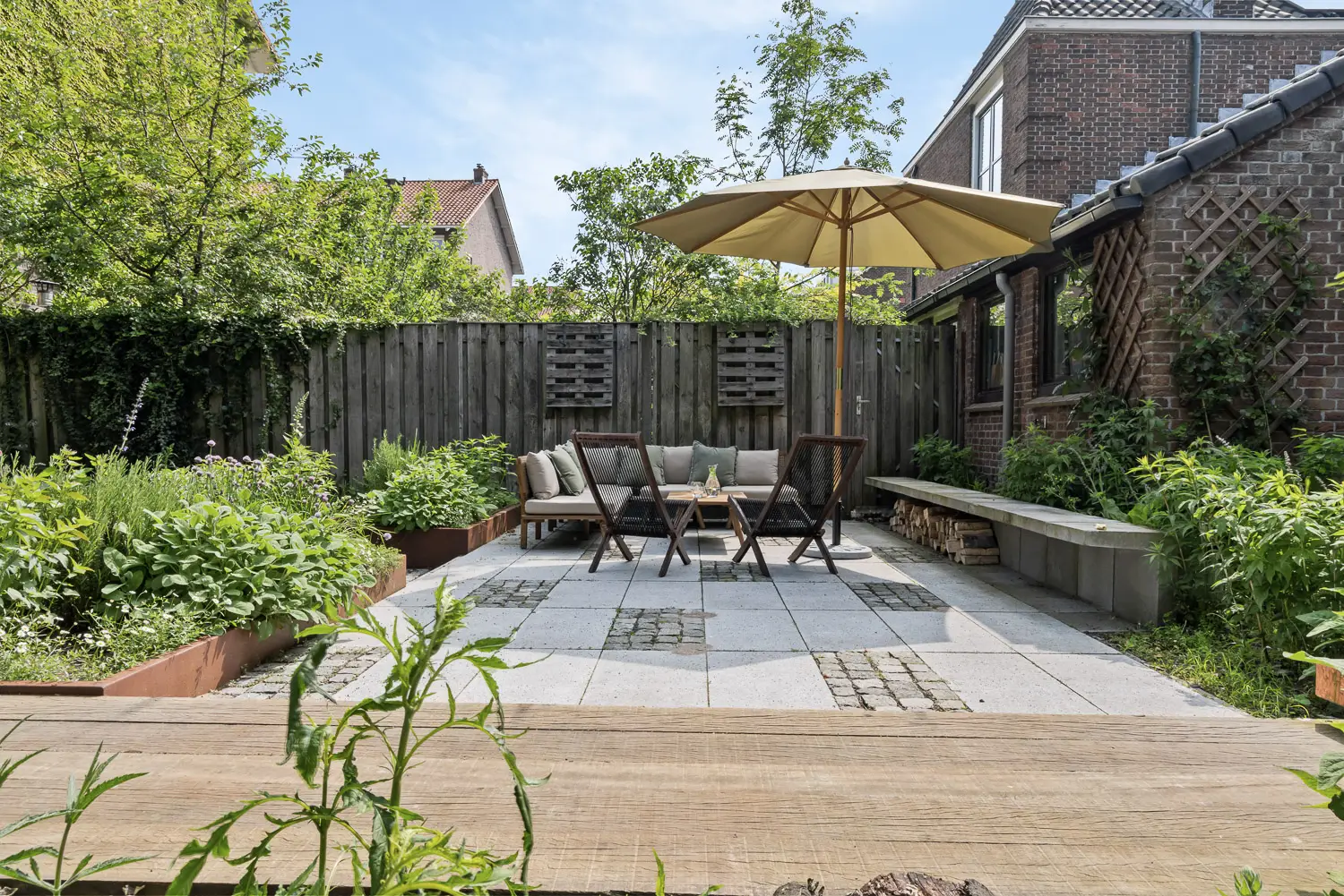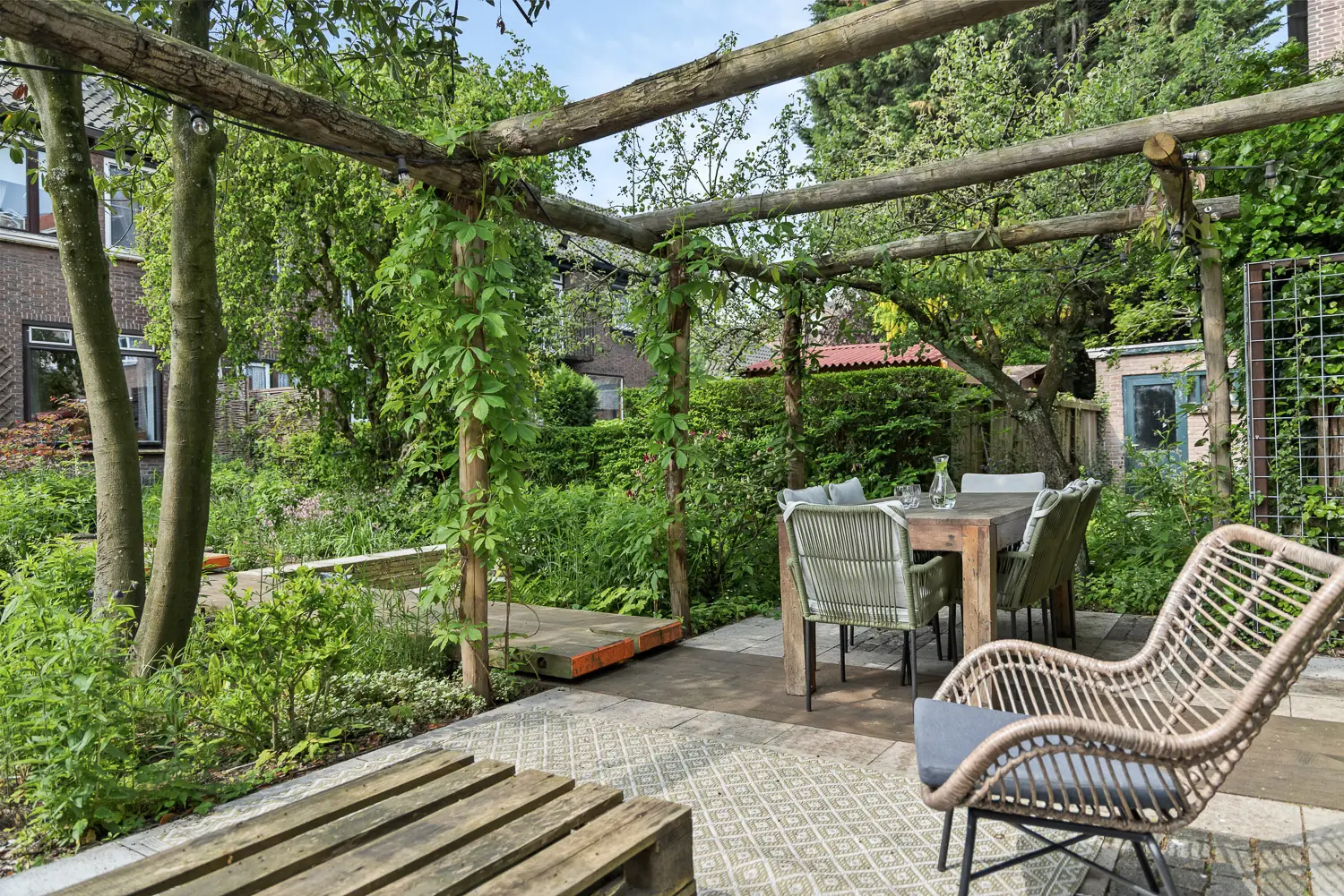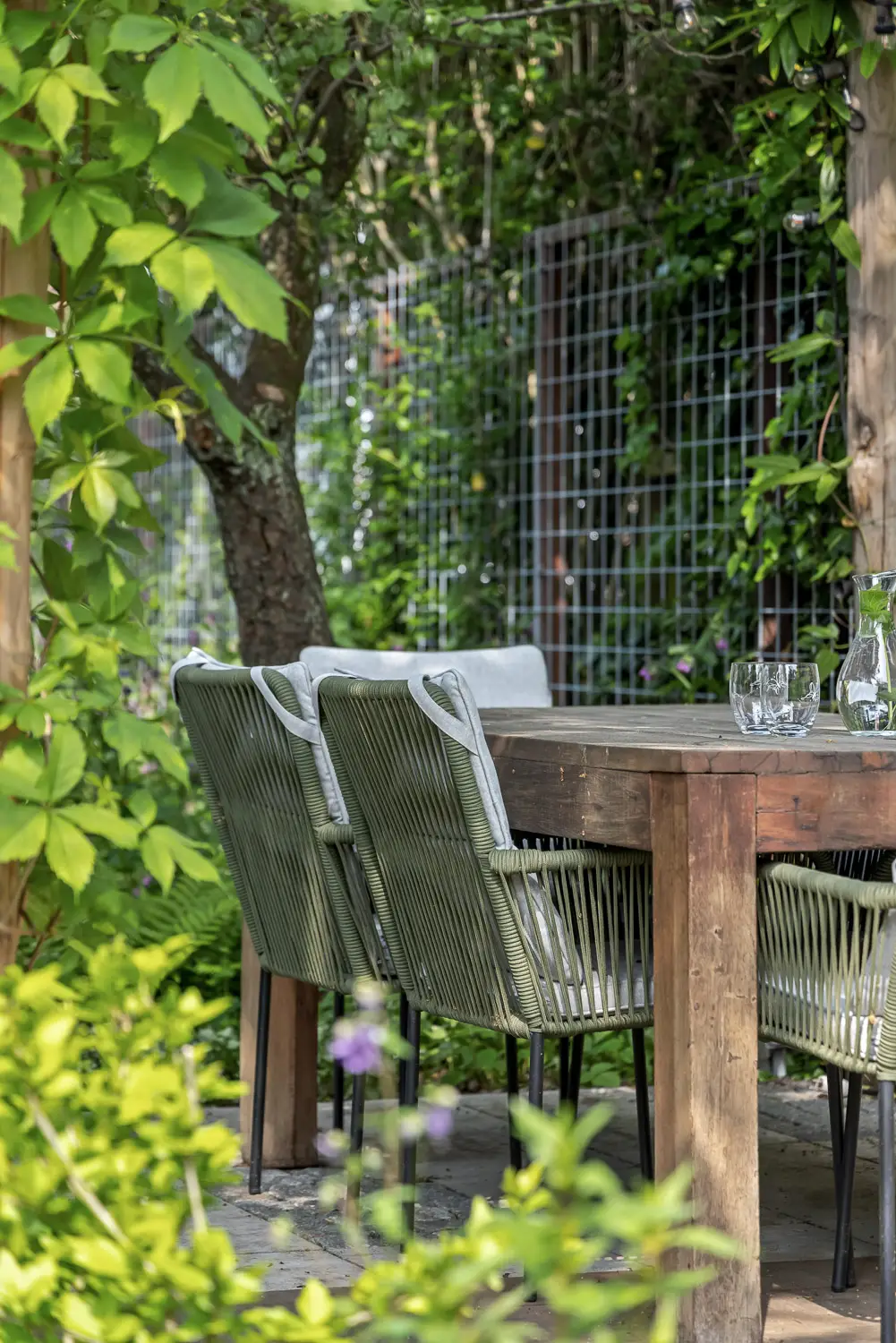 Kortom: een tuin waar oude en ruwe elementen samenkomen met weelderig groen, zachte overgangen, natuurlijke materialen en rustgevende details. Een plek om adem te halen, te voelen en te genieten van het buiten zijn, midden in de stad.
