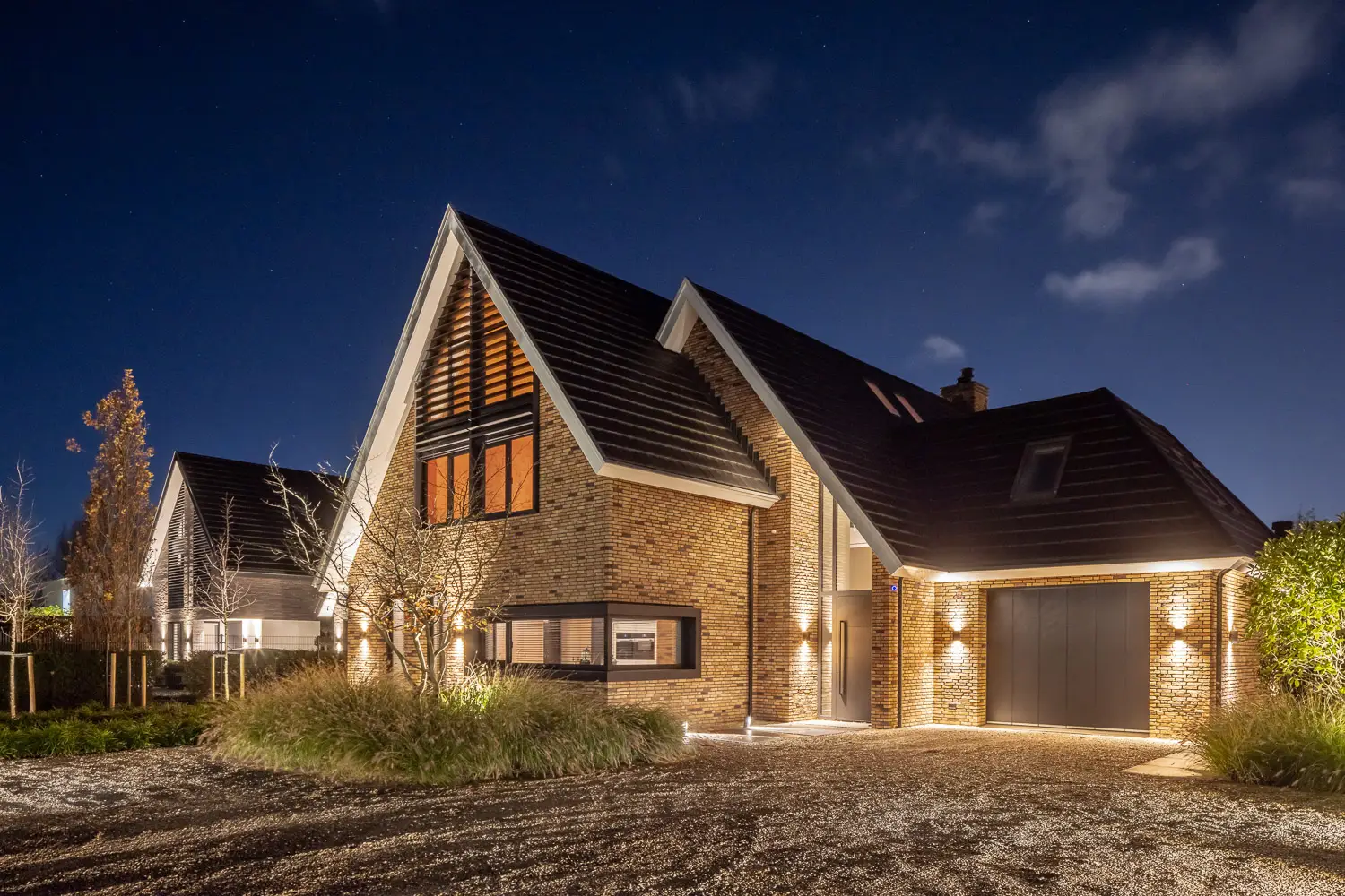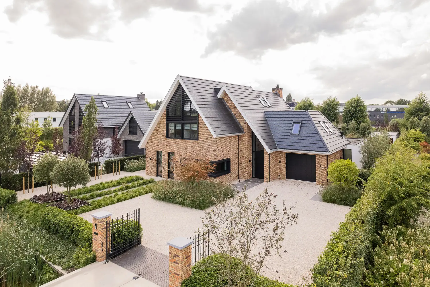 Een echte eyecatcher is de robuuste DJS poort, die meteen bij aankomst een gevoel van kwaliteit en exclusiviteit geeft. Achter deze entree ontvouwt zich een moderne buitenruimte met onder andere een sfeervolle buitenkamer, een comfortabele zitkuil en subtiele Inlite verlichting die de tuin in de avonduren tot leven brengt.